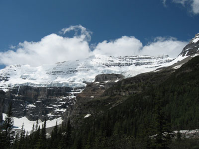 I had planned to go back to the camp ground and if I felt up to it we would walk the 7 KM Bow River Loop. If that was successful then Sunday we would return to Lake Louise walk to the end of the lake and then the additional 3.6 KM 365 meter rise to the plain of the six glaciers. Instead when we got to the end of the lake we continued up to the Plain of the six glaciers to the Teahouse at the top and passed some marmots on the way.