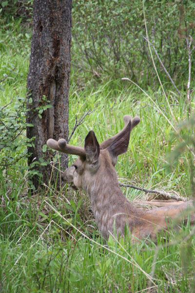 When a Parks Canada employee or ranger drove by I stopped and asked d him. He told me they don't do that anymore and were just delivering more fire fighting equipment to a different location. Since we never did get to the end of the road which doesn't go anywhere but the lakes so you go out the way you go in after going to Cows Canada's best Ice Cream according to Readers Digest we drove back to the Vermillion lakes road and went to the end. On that road we saw the three bears not far from where we had walked earlier. We didn't get a good view or a long view through the underbrush but we did see them.