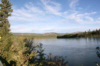 We drove the 329 mile Northern portion of the Klondike Loop, Yukon 2 in two days stopping in Carmacks along the way. Carmacks is the only crossing of the Yukon River between Dawson City and Whitehorse. There is one Motel with a small campground behind it with a gas station a small restaurants and not much else. The views of the Yukon were spectacular as we walked along the bank and I did have WIFI there.